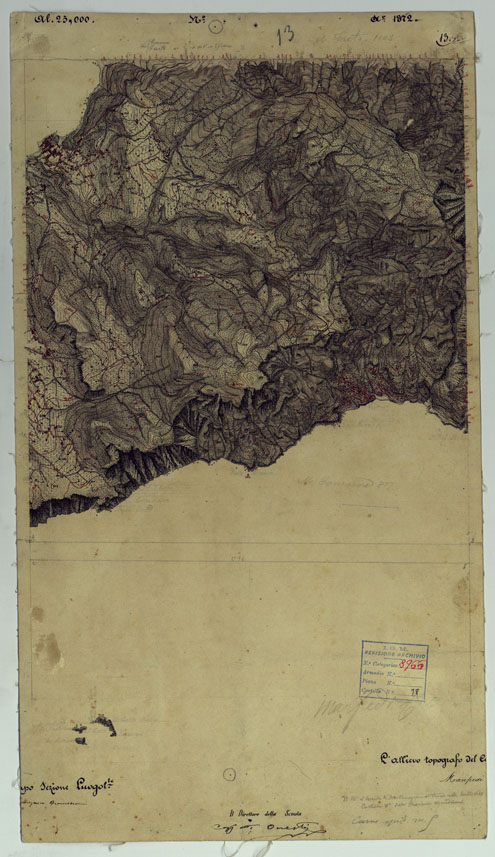I rilevamenti topografici per la realizzazione della “Carta d´Italia&lrquo” iniziarono nel 1878: si trattava di un´opera così importante e lodevole che meritò la consapevole attenzione, non solo degli addetti ai lavori e delle categorie professionali coinvolte, ma anche delle più alte autorità del Regno.