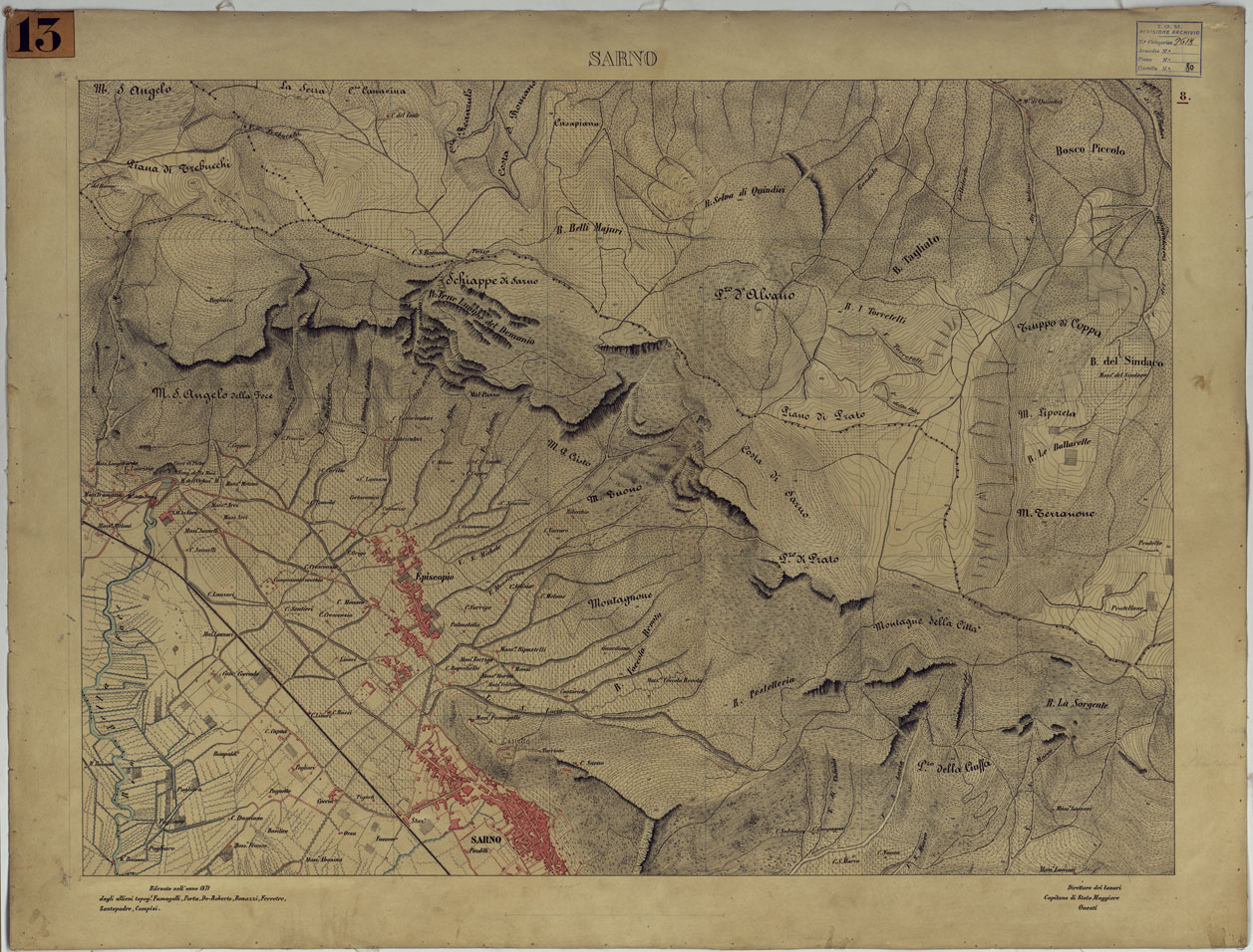 CARTA TOPOGRAFICA DEL MONTE VESUVIO RILEVATA E DISEGNATA DAGLI ALLIEVI DELL'ISTITUTO TOPOGRAFICO MIITARE NEGLI ANNI 1876-76 ALLA SCALA DI 1:10000 - FOGLIO 8 SARNO.