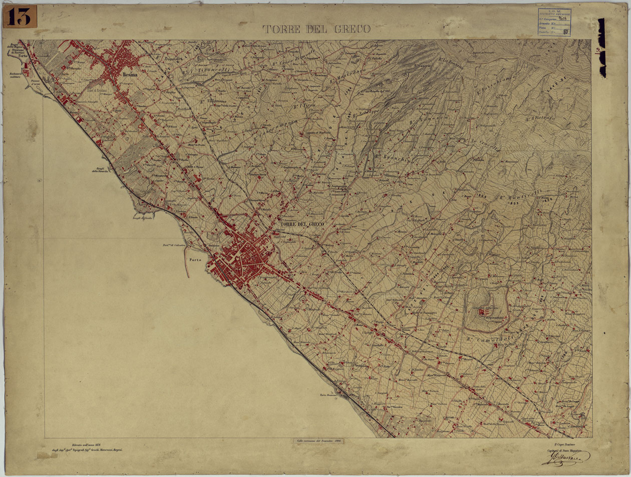 CARTA TOPOGRAFICA DEL MONTE VESUVIO RILEVATA E DISEGNATA DAGLI ALLIEVI DELL'ISTITUTO TOPOGRAFICO MIITARE NEGLI ANNI 1876-76 ALLA SCALA DI 1:10000 - FOGLIO 9 TORRE DEL GRECO.