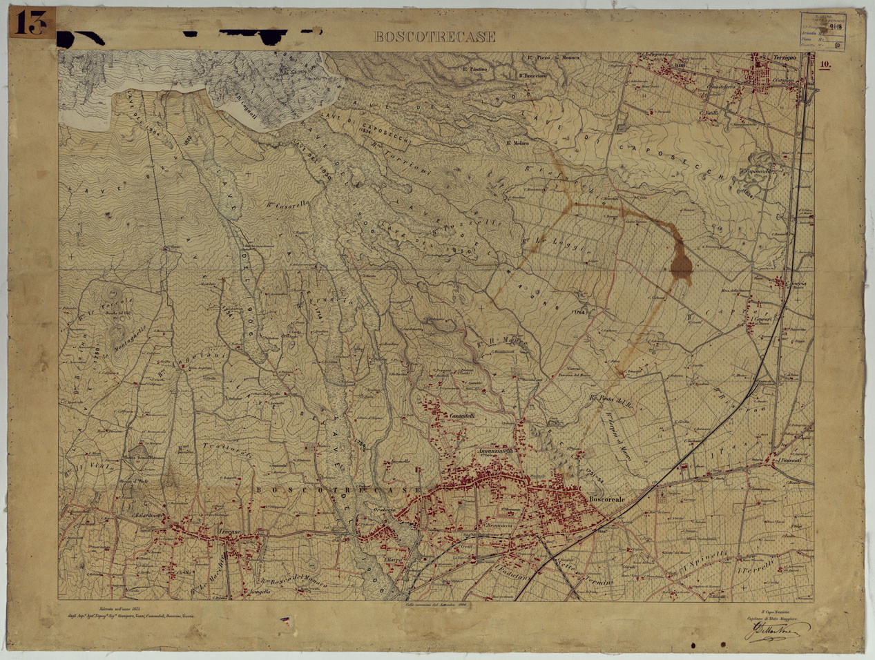 CARTA TOPOGRAFICA DEL MONTE VESUVIO RILEVATA E DISEGNATA DAGLI ALLIEVI DELL'ISTITUTO TOPOGRAFICO MIITARE NEGLI ANNI 1876-76 ALLA SCALA DI 1:10000 - FOGLIO 10 BOSCOTRECASE.