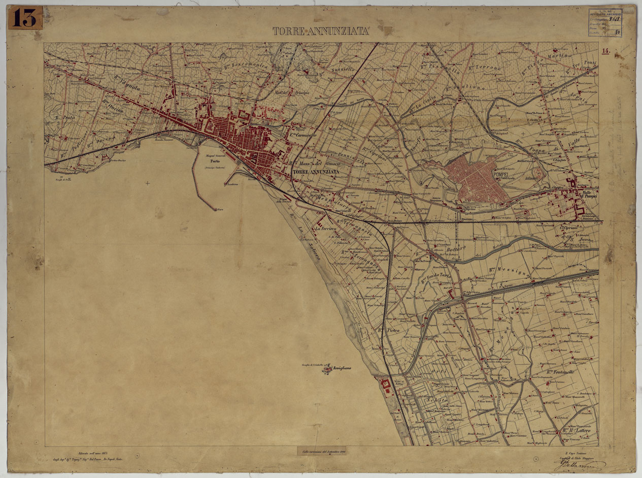 CARTA TOPOGRAFICA DEL MONTE VESUVIO RILEVATA E DISEGNATA DAGLI ALLIEVI DELL'ISTITUTO TOPOGRAFICO MIITARE NEGLI ANNI 1876-76 ALLA SCALA DI 1:10000 - FOGLIO 14 TORRE ANNUNZIATA.