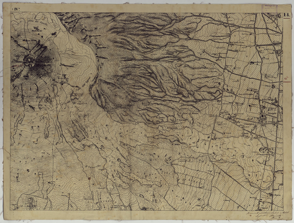 CARTA TOPOGRAFICA DEL MONTE VESUVIO RILEVATA E DISEGNATA DAGLI ALLIEVI DELL'ISTITUTO TOPOGRAFICO MIITARE NEGLI ANNI 1876-76 ALLA SCALA DI 1:10000 RICONOSCIUTA PER IL SISTEMA ROTABILE NEL 1880 - FOGLIO 4 - TERZIGNO.