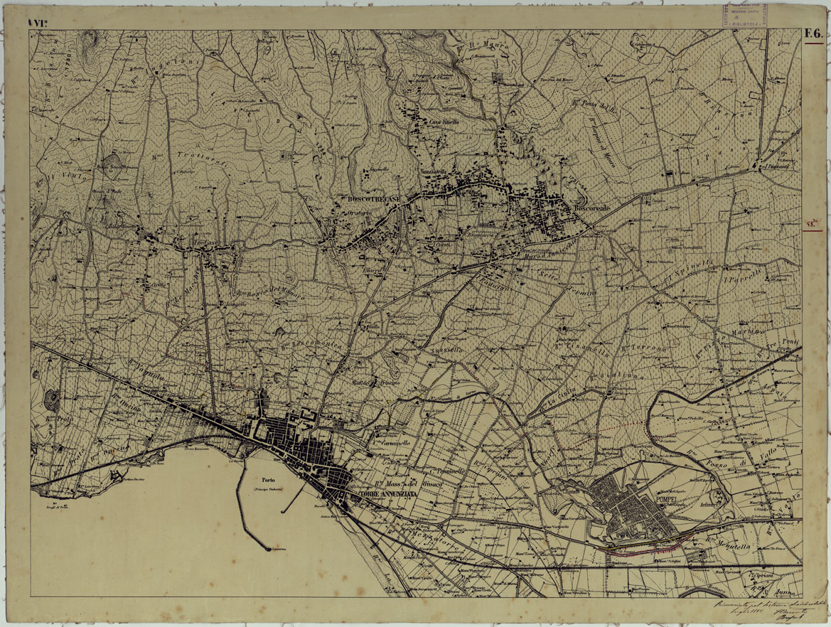 CARTA TOPOGRAFICA DEL MONTE VESUVIO RILEVATA E DISEGNATA DAGLI ALLIEVI DELL'ISTITUTO TOPOGRAFICO MIITARE NEGLI ANNI 1876-76 ALLA SCALA DI 1:10000 RICONOSCIUTA PER IL SISTEMA ROTABILE NEL 1880 - FOGLIO 6 TORRE ANNUNZIATA.