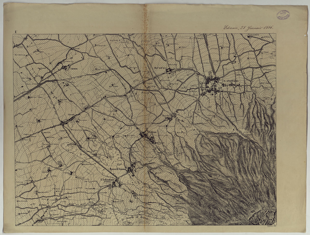 CARTA TOPOGRAFICA DEL MONTE VESUVIO RILEVATA E DISEGNATA DAGLI ALLIEVI DELL'ISTITUTO TOPOGRAFICO MIITARE NEGLI ANNI 1876-76 ALLA SCALA DI 1:10000 - FOGLIO I