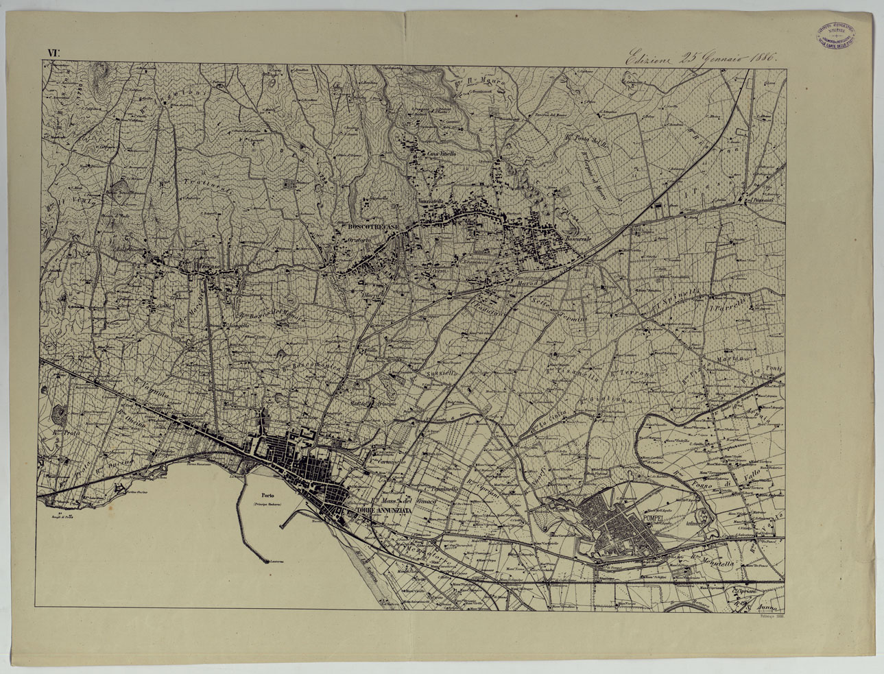 CARTA TOPOGRAFICA DEL MONTE VESUVIO RILEVATA E DISEGNATA DAGLI ALLIEVI DELL'ISTITUTO TOPOGRAFICO MIITARE NEGLI ANNI 1876-76 ALLA SCALA DI 1:10000 - FOGLIO VI.