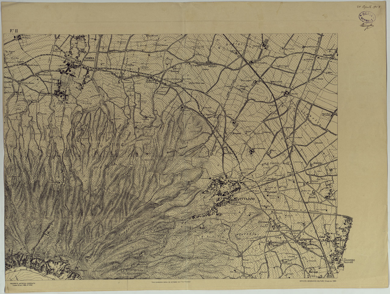 CARTA TOPOGRAFICA DEL MONTE VESUVIO RILEVATA E DISEGNATA DAGLI ALLIEVI DELL'ISTITUTO TOPOGRAFICO MIITARE NEGLI ANNI 1876-76 ALLA SCALA DI 1:10000 - FOGLIO II.