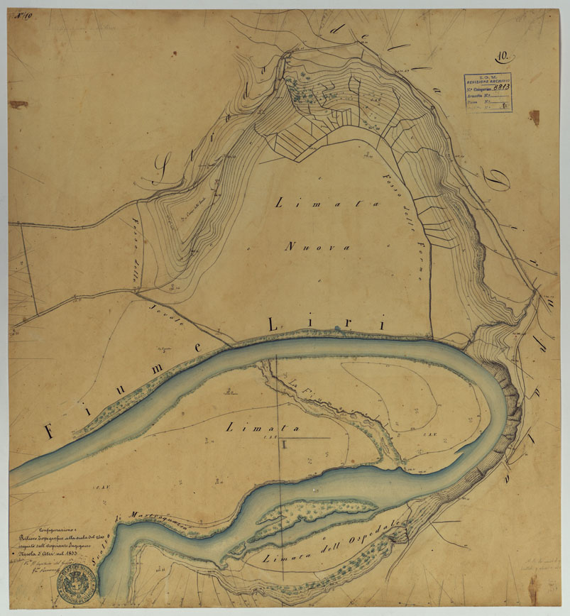 "Ventidue tavolette eseguite da ufficiali del R. Topografico di Napoli. Rappresentano l'orografia mediante curve di livello geometriche le acque sono colorate in azzurro le vegetazioni in verde gli abitati in rosso. Ciascuna tavoletta reca la firma dell'operatore e la data. Annesso un "Grafico delle operazioni geodetiche intorno ad Isoletta" eseguite nel maggio 1853 dall'asp. Top. G. de Vita e dirette dall'Ing. Schiavoni. Il titolo non è presente sulla carta."