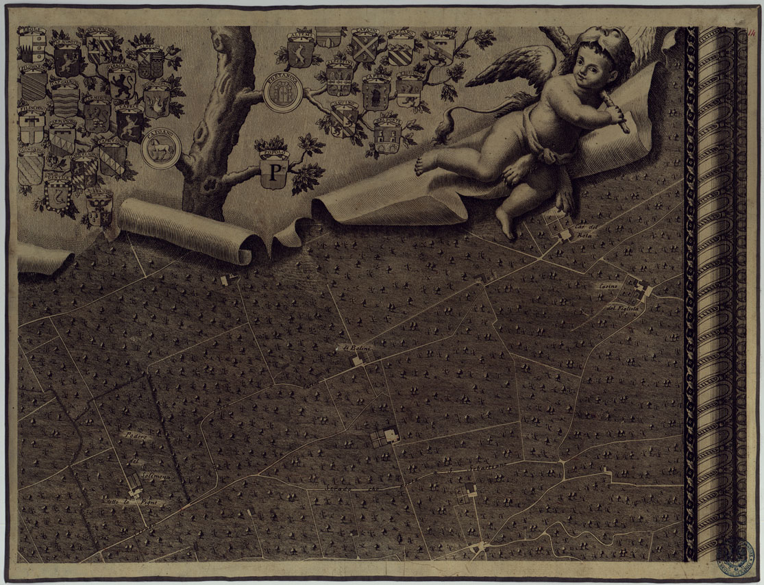 "Grande carta in 35 fogli incisa su rame. L'esecuzione di questa carta venne decretata nel 1750 e commessa a G. Carafa Duca di Noja il quale fu assistito dal "gromatico Vanti che ne formò l'intera delineazione geometrica" l'incisione in rame venne affidata ai Prof.i Campana, Aloja e Lamarra. Morto il Carafa l'opera rimase interrotta essa venne ripresa nel 1769 affidata a Gio. Pignatelli Principe di Monterodumi "che la ornò e condusse in fine". Nel 1775 vi furono fatte le correzioni ed aggiornamenti a cura del Prof. di Architettura e Matematica Niccolò Carletti che ci aggiunse anche una lunga "Spiegazione storiografica dell'antico e moderno". Il foglio N° 1 contiene la seguente dedica: "Alla Maestà- di Carlo III- Re delle Spagne- Pio Felice Augusto. Padre della P.- Questa mappa Topografica- di Napoli e dei Contorni- Incominciata nel suo felicissimo Governo - da Giovanni Carafa Duca di Noja- a pubbliche spese- e perfezionata nel presente-di Ferdinando IV- Re delle due Sicilie- Principe ottimo indulgentissimo- L'Ordine ed il Popolo Napolitano- Gio. Battista Spinelli Princ. di Cariati per Nilo- F. Giuseppantonio Comm. Francone per Montagna- Gennaro De Maio Duca di San Pietro per Montagna- Vincenzo Capecelatro Duca di Siano per Capoana- Gio. Battista Albertini Princ. di Cimitile per Portanuova- Andrea di Gennaro March. D'Auletta per Porto - Giuseppe Califano per lo Popolo. Dedicano. Offrono. Consacrano- nell'Anno di nostra Era- MDCCLXXV.- Il foglio N° 19 contiene le scale grafiche in pertiche napoletane, piedi parigini, piedi di Londra, palmi romani. I fogli N.i 24-34 contengono una "Veduta scenografica a ponente della Città di Napoli in Campagna Felice" la "Spiegazione storiografica dell'antico e del moderno della città di Napoli" e notizie sulla costruzione della carta. Il foglio N° 35 contiene tre iscrizioni greche tratte dal vol. III del "Corpus Inscriptionum Graecarum" N.i 5788, 5805, 5823 nella parte che si riferisce alla Magna Grecia. Due copie (la copia è il documento n. 2) alla prima delle quali è annessa la "Topografia dell'Agro Napoletano con le sue adiacenze. Delineata dal R. Geografo G. A. Rizzi Zannoni MDCCXCIII" alla scala approssimativa di 1:50.000 artistica ed accurata incisione in rame, su la quale è stato tracciato a mano il quadro d'unione."