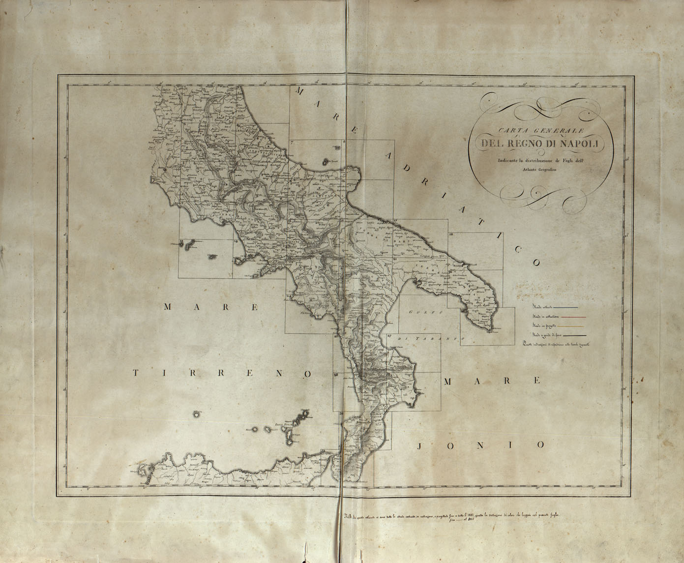 ATLANTE GEOGRAFICO DEL REGNO DI NAPOLI DELINEATO PER ORDINE DI FERDINANDO IV RE DELLE DUE SICILE E C. E C. DA GIO' ANTONIO RIZZI ZANNONI GEOGRAFO DI SUA MAESTA' E TERMINATO NEL 1808. QUADRO D'UNIONE.