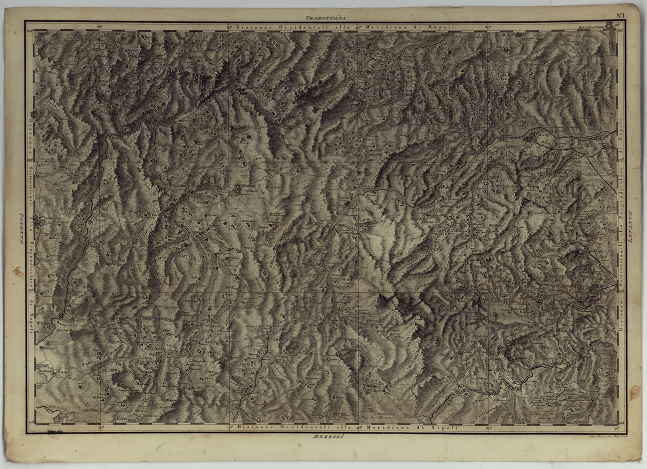 ATLANTE GEOGRAFICO DEL REGNO DI NAPOLI DELINEATO PER ORDINE DI FERDINANDO IV RE DELLE DUE SICILIE &C., &C., DA GIO. ANTONIO RIZZI ZANNONI GEOGRAFO DI SUA MAESTA' E TERMINATO NEL 1808 - TAVOLA 1.