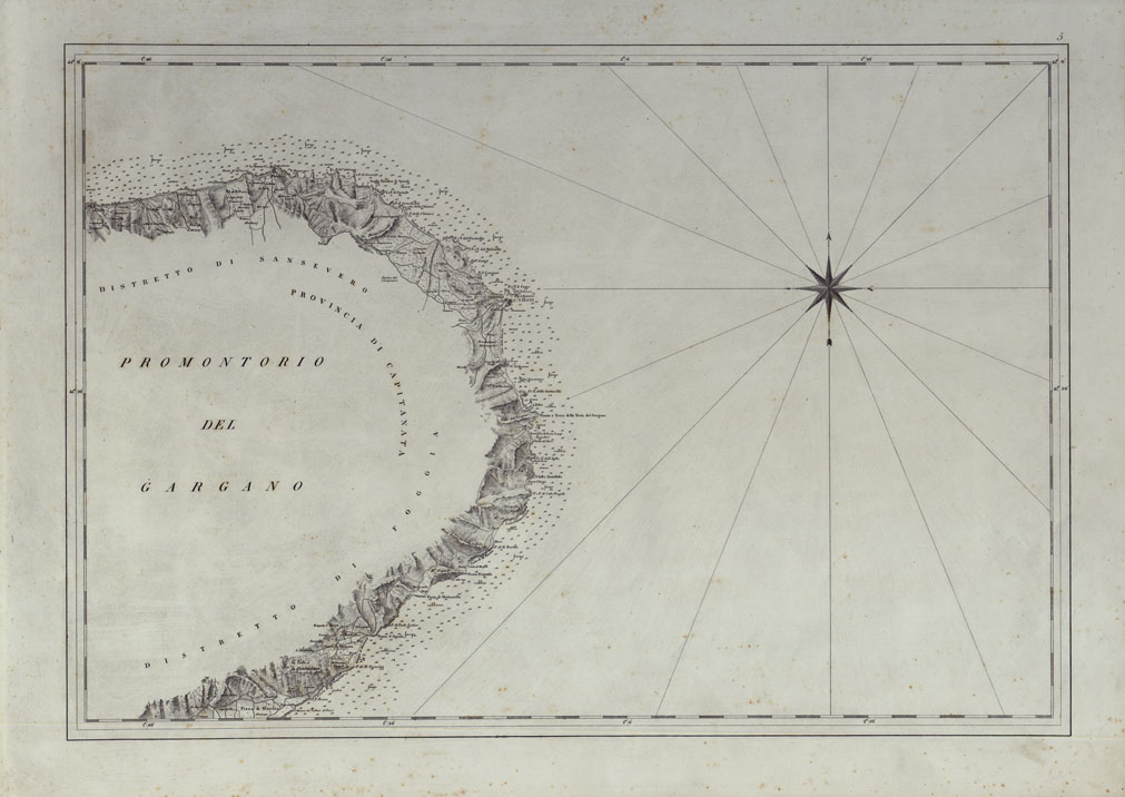 CARTA DI CABOTAGGIO DELLA COSTA DEL REGNO DELLE DUE SICILIE BAGNATA DALL'ADRIATICO DAL FIUME TRONTO AL CAPO DI S.TA MARIA DI LEUCA ESEGUITA NEL REALE OFFICIO TOPOGRAFICO. NAPOLI, 1834 - TAVOLA 5.