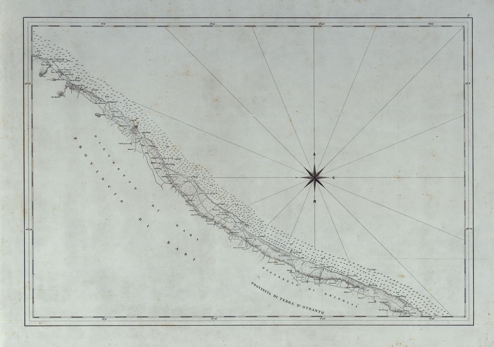 CARTA DI CABOTAGGIO DELLA COSTA DEL REGNO DELLE DUE SICILIE BAGNATA DALL'ADRIATICO DAL FIUME TRONTO AL CAPO DI S.TA MARIA DI LEUCA ESEGUITA NEL REALE OFFICIO TOPOGRAFICO. NAPOLI, 1834 - TAVOLA 9.