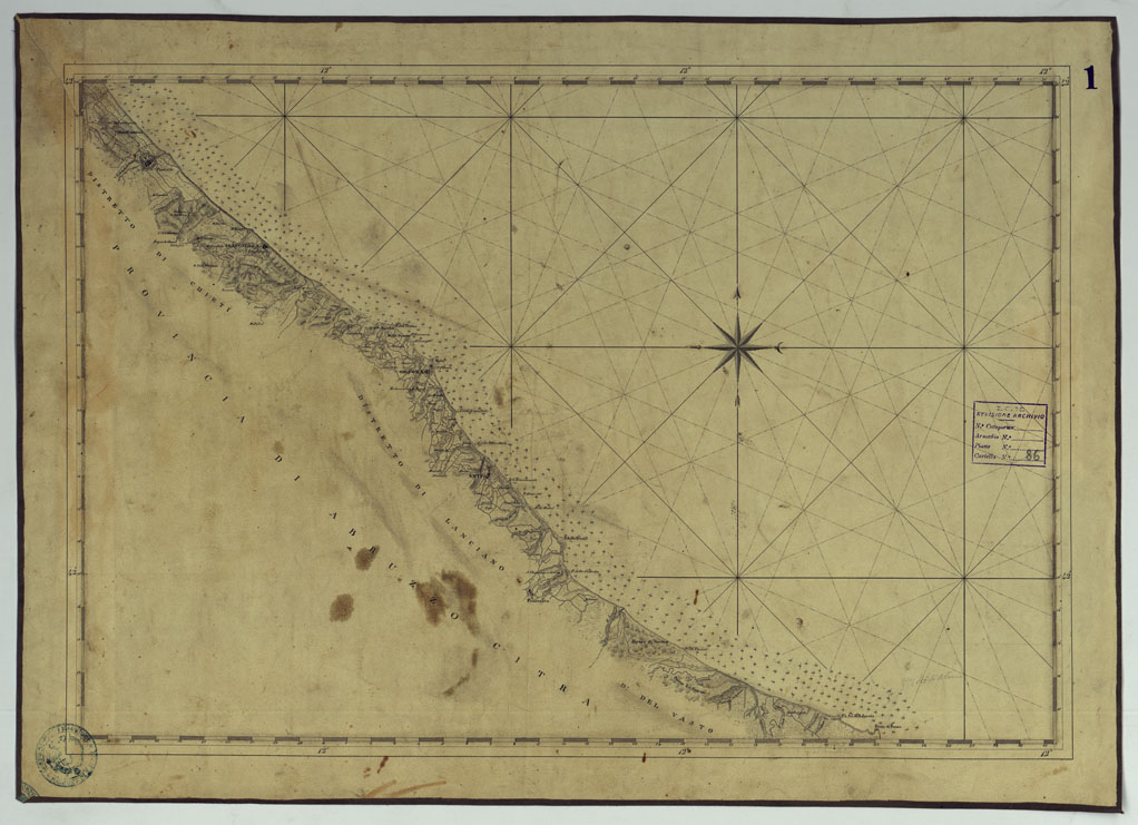 CARTA DI CABOTAGGIO DELLA COSTA DEL REGNO DELLE DUE SICILIE BAGNATA DALL'ADRIATICO DAL FIUME TRONTO AL CAPO DI S.TA MARIA DI LEUCA ESEGUITA NEL REALE OFFICIO TOPOGRAFICO. NAPOLI, 1834 - FOGLIO 1.