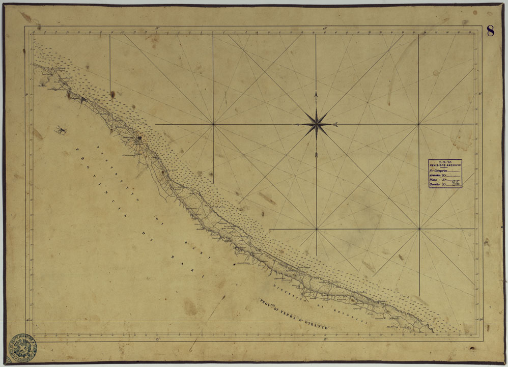 CARTA DI CABOTAGGIO DELLA COSTA DEL REGNO DELLE DUE SICILIE BAGNATA DALL'ADRIATICO DAL FIUME TRONTO AL CAPO DI S.TA MARIA DI LEUCA ESEGUITA NEL REALE OFFICIO TOPOGRAFICO. NAPOLI, 1834 - FOGLIO 8.