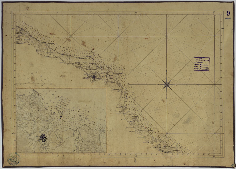 CARTA DI CABOTAGGIO DELLA COSTA DEL REGNO DELLE DUE SICILIE BAGNATA DALL'ADRIATICO DAL FIUME TRONTO AL CAPO DI S.TA MARIA DI LEUCA ESEGUITA NEL REALE OFFICIO TOPOGRAFICO. NAPOLI, 1834 - FOGLIO 9.