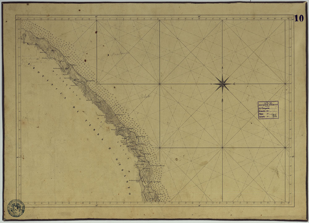 CARTA DI CABOTAGGIO DELLA COSTA DEL REGNO DELLE DUE SICILIE BAGNATA DALL'ADRIATICO DAL FIUME TRONTO AL CAPO DI S.TA MARIA DI LEUCA ESEGUITA NEL REALE OFFICIO TOPOGRAFICO. NAPOLI, 1834 - FOGLIO 10.