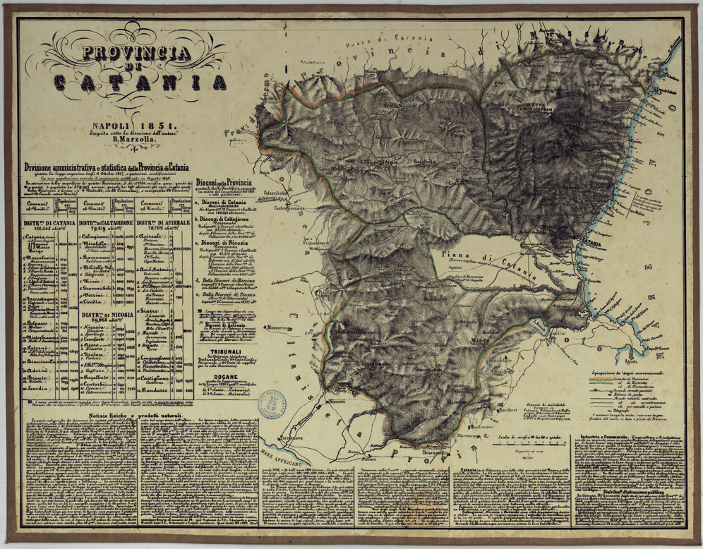CARTA AMMINISTRATIVA DEL REGNO DELLE DUE SICILIE DIVISA IN SINGOLE PROVINCIE - PROVINCIA DI CATANIA.
