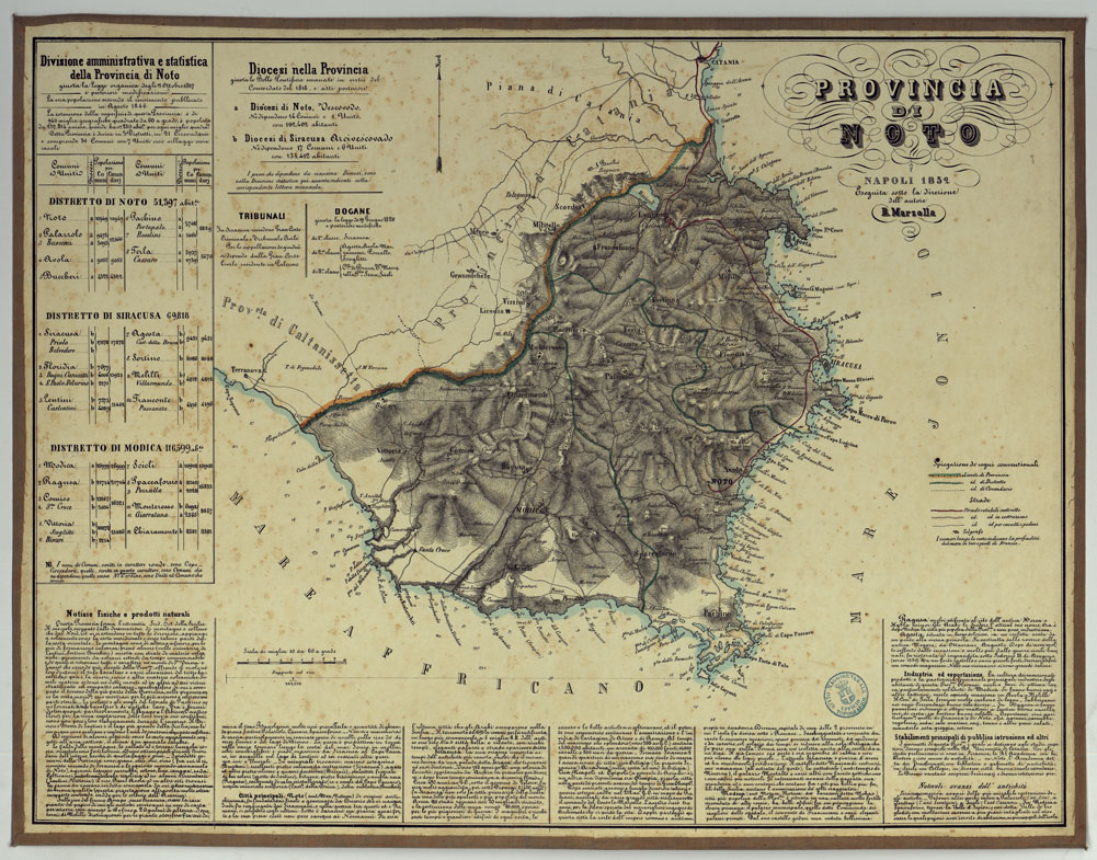 CARTA AMMINISTRATIVA DEL REGNO DELLE DUE SICILIE DIVISA IN SINGOLE PROVINCIE - PROVINCIA DI NOTO.