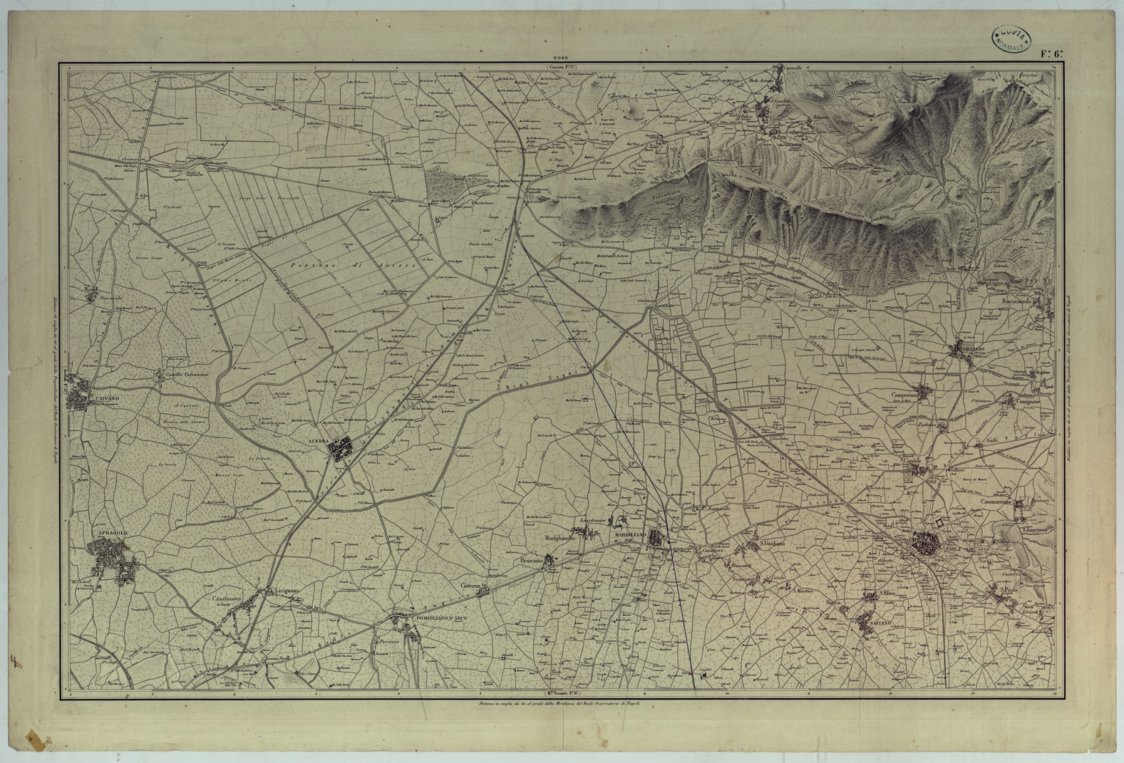 CARTA TOPOGRAFICA ED IDROGRAFICA DEI CONTORNI DI NAPOLI LEVATA PER ORDINE DI S.M. FERDINANDO I RE DEL REGNO DELLE DUE SICILIE DAGLI UFFIZIALI DELLO STATO MAGGIORE E DALL'INGEGNERI TOPOGRAFI NEGLI ANNI 1817-1818-1819 - FOGLIO 6.