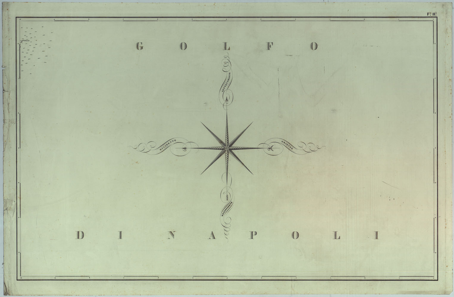 "DISEGNATA ED INCISA NELL'OFFICIO TOPOGRAFICO DI NAPOLI. Questa carta si compone di 15 fogli (in origine 9, e poi portati a 12) incisi su rame, stampati in nero. Essa è basata sulle mappe catastali già esistenti al 10.000, ridotte alla scala di 1: 20.000, riconosciute sul terreno e poggiate sui lavori di triangolazione eseguiti dal 1816 al 1819 nel territorio di Napoli, con aggiunta dei rilievi idrografici lungo le coste del Golfo e delle Isole. Le longitudini sono calcolate dal meridiano del R. Osservatorio di Napoli. L ' orografia è rappresentata con fine tratteggio a luce obliqua. Gli scandagli sono calcolati in passi. La carta è notevole per la chiarezza del disegno. Essa mostra centri abitati, strade, fiumi, colture e vegetazioni, ecc., con particolare ricchezza di dettagli. IL foglio N° 7 contiene il titolo e varie "piante delle principali antichità del territorio di Pozzuoli". Il foglio N° 10 contiene l ' Isola d ' Ischia il foglio N° 11 la rosa dei venti il foglio N° 13 la " Pianta degli scavi di Pompei nello stato in cui si trovano alla fine del 1875. Delineata ed incisa nel R. Officio Topografico della guerra. Napoli" alla scala di 1: 2.000 il foglio N° 14 l'Isola di Capri. Due copie d'Archivio (Cart. d ' Arch. N° 86, Docum. N° 14) una delle quali incompleta con la pianta di Pompei a data imprecisata 184.. Altre due copie (N° 78 d ' inv. gen. ) sono pure incomplete con la pianta di Pompei alla data 1875 e annesso un quadro d ' unione."