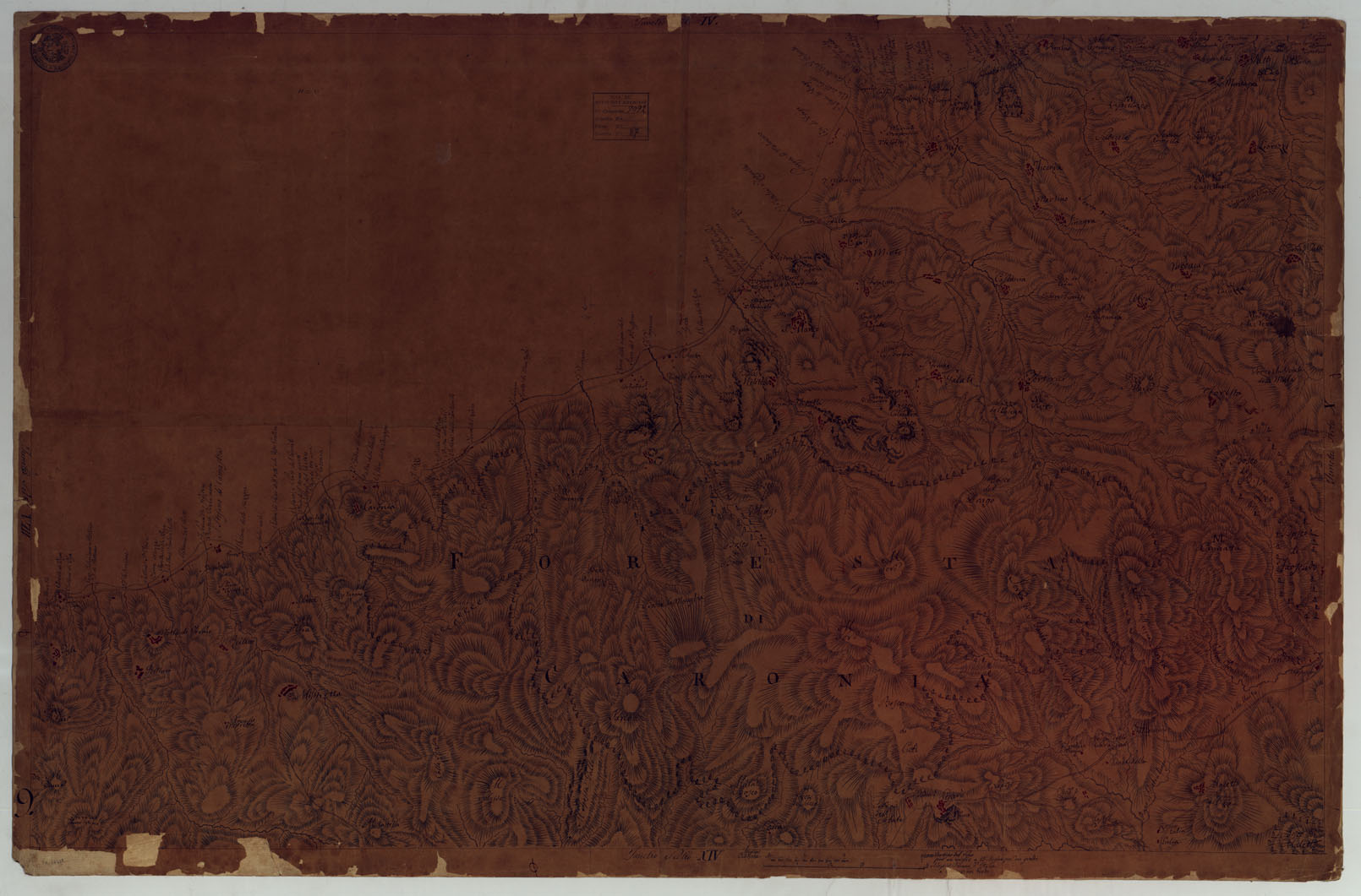 "DIVISA IN (25) 23 FOGLI DILIGENTEMENTE DELINEATA GIUSTA LE LEGGI ASTRONOMICHE E TOPOGRAFICHE PER ORDINE DELLA MAESTA' DELL'IMPERATORE CARLO VI NEGLI ANNI 1719, 1720, 1721, DAL SIGNOR BARONE SAMUELE DI SCHMETTAU ALLORA AL SERVIZIO AUSTRIACO E POI MARESCIALLO E GRAN MAESTRO D'ARTIGLIERIA NEGLI ESERCITI DI SUA MAESTA' IL RE DI PRUSSIA. QUESTA CARTA RETTIFICATA PER ORDINE DELLE MAESTA' DEL RE, E DELLA REGINA DELLE DUE SICILIE L'ANNO 1800 ESCE ORA ALLA LUCE COME UN MONUMENTO ALLA MEMORIA E ALL'INGEGNO DEL MARESCIALLO CONTE DI SCHIMETTAU PER OPERA DEL DI LUI FIGLIO. Antico lucido ricavato dalla carta originale costruita dal 1719 al 1721 dal generale barone Samuele di Schmettau dietro incarico dell'Imperatore Carlo VI, durante la guerra di successione spagnuola. Questa carta non venne mai pubblicata: si ritiene che i disegni originali pervenissero al "Depot de la Guerre" di Parigi in seguito all'acquisto della raccolta di carte topografiche provenienti dal Gabinetto del figlio dello Schmettau, conservate dall'editore Shropp di Berlino. Questo lucido mostra che il figlio del Barone Samuele si era proposto di riprodurre la carta, con nuove correzioni, per ordine del Re di Sicilia. Il lucido rappresenta l'orografia col tratteggio (montagna e roccia): gli abitati sono rappresentati in pianta riempiti in rosso le strade sono classificate in vie maestre e sentieri sono pure indicati forti, fortezze, crateri, corso delle lave e zone boschive. Uno dei fogli contiene il titolo (in italiano e in francese) un altro reca la leggenda dei segni convenzionali e le scale grafiche in canne siciliane, miglia italiane, pertiche del Reno e tese di Francia. Di questa carta fu eseguita una riduzione in 4 fogli pubblicata nel 1748 col titolo: "Description nouvelle et exacte de Toute l'Ile de Sicile" di cui il "Depot de la Guerre" possedeva nel 1802, tre copie e che costituì la miglior rappresentazione cartografica dell'isola per tutto il secolo XVII. (Cfr. Revelli P., "Intorno alla carta della Sicilia" 1719-21 di Samuele Schmettau R.G.I., 1909. Mori A., "La cartografia ufficiale dell'Italia e l'I.G.M.", 1922. Firenze)."