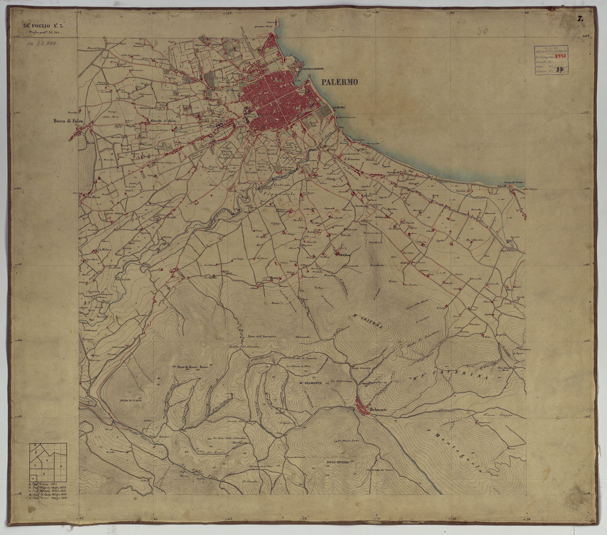 CARTA TOPOGRAFICA DELLA REGIONE DI PALERMO LEVATA DAL REALE OFFICIO TOPOGRAFICO DI NAPOLI - Foglio 7 Palermo, Belmonte Mezzagno