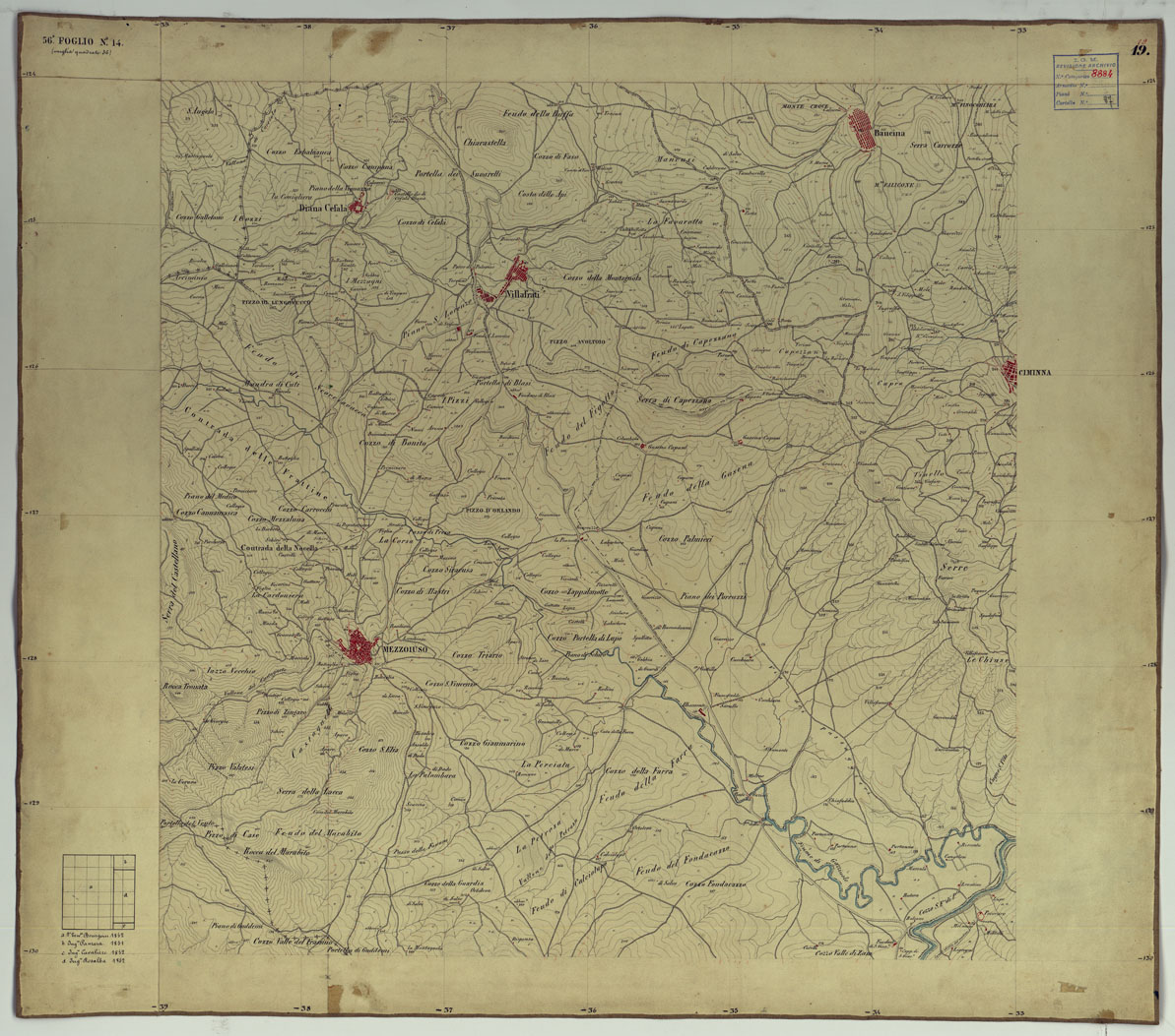 CARTA TOPOGRAFICA DELLA REGIONE DI PALERMO LEVATA DAL REALE OFFICIO TOPOGRAFICO DI NAPOLI - Foglio 19 Villafrati, Mezzojuso, Ciminna, Baucina