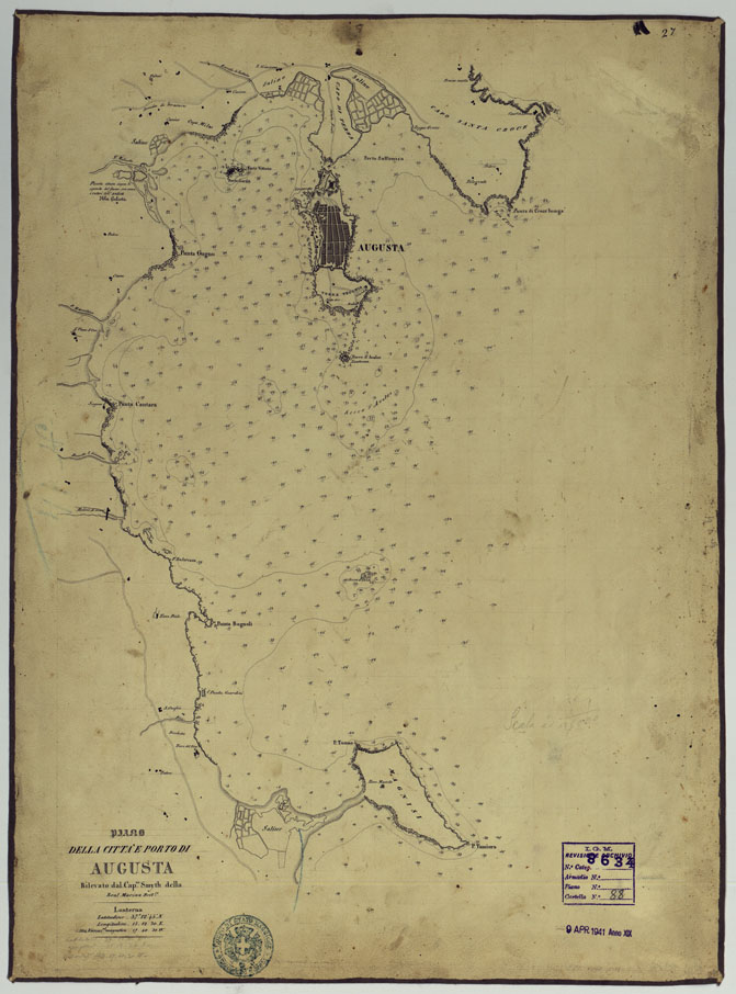PIANO DELLA CITTA' E PORTO DI AUGUSTA RILEVATO DAL CAP SMYTH DELLA REAL MARINA BRIT.