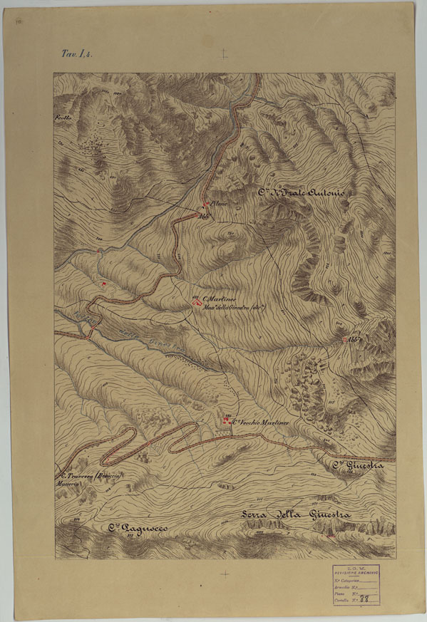 I rilevamenti topografici per la realizzazione della “Carta d´Italia&lrquo” iniziarono nel 1878: si trattava di un´opera così importante e lodevole che meritò la consapevole attenzione, non solo degli addetti ai lavori e delle categorie professionali coinvolte, ma anche delle più alte autorità del Regno.