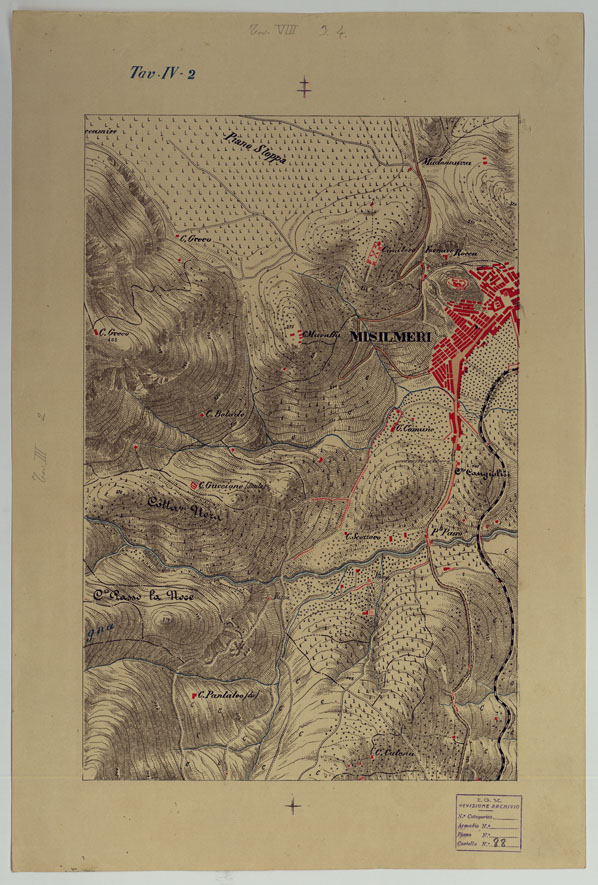 CARTA DEI DINTORNI DI PALERMO ALLA SCALA DI 1 A 10.000 PER LEMANOVRE SULLA CARTA ESEGUITA MEDIANTE INGRANDIMENTO GEOMETRICO DELLA CARTA AL 50.000, RIVEDUTA E COMPLETATA IN OGNI PARTE SUL TERRENO, CON STRUMENTI PER LEVATE SPEDITIVE - TAVOLA IV 2.