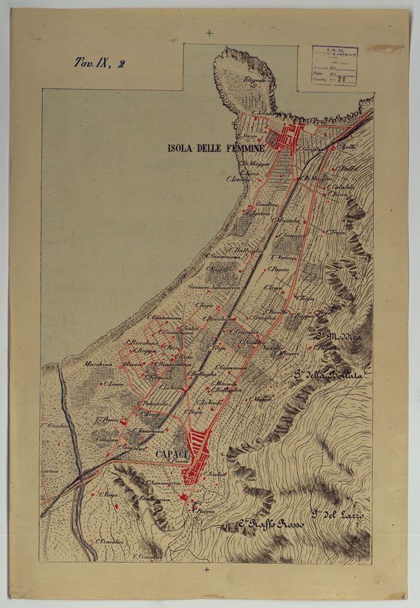 CARTA DEI DINTORNI DI PALERMO ALLA SCALA DI 1 A 10.000 PER LEMANOVRE SULLA CARTA ESEGUITA MEDIANTE INGRANDIMENTO GEOMETRICO DELLA CARTA AL 50.000, RIVEDUTA E COMPLETATA IN OGNI PARTE SUL TERRENO, CON STRUMENTI PER LEVATE SPEDITIVE -TAVOLA IX 2.