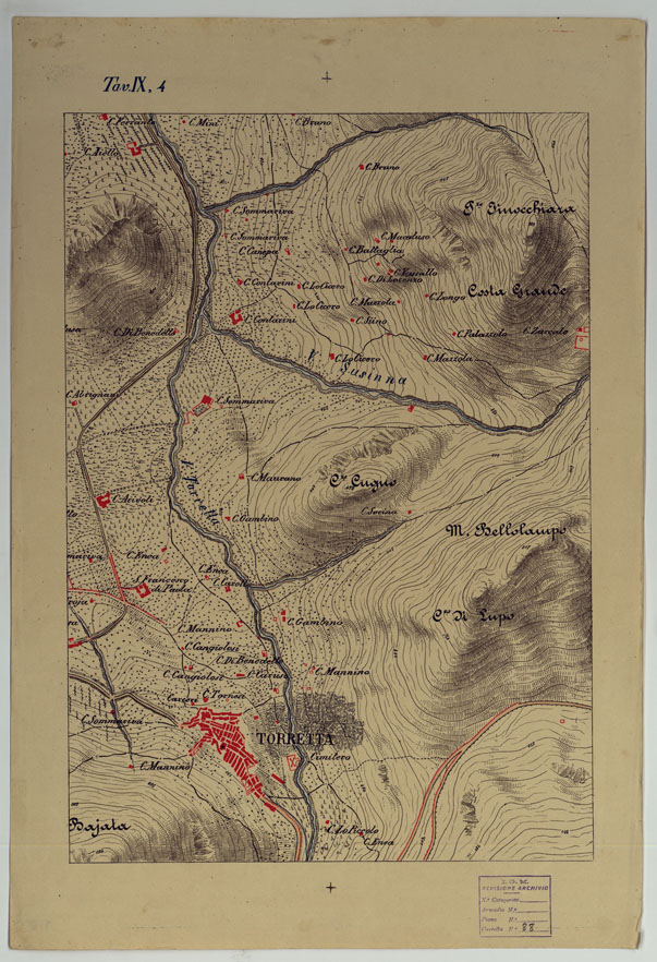 CARTA DEI DINTORNI DI PALERMO ALLA SCALA DI 1 A 10.000 PER LEMANOVRE SULLA CARTA ESEGUITA MEDIANTE INGRANDIMENTO GEOMETRICO DELLA CARTA AL 50.000, RIVEDUTA E COMPLETATA IN OGNI PARTE SUL TERRENO, CON STRUMENTI PER LEVATE SPEDITIVE - TAVOLA IX 4.