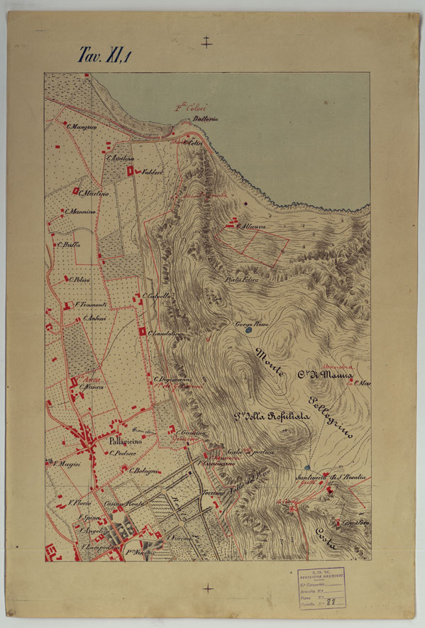 CARTA DEI DINTORNI DI PALERMO ALLA SCALA DI 1 A 10.000 PER LEMANOVRE SULLA CARTA ESEGUITA MEDIANTE INGRANDIMENTO GEOMETRICO DELLA CARTA AL 50.000, RIVEDUTA E COMPLETATA IN OGNI PARTE SUL TERRENO, CON STRUMENTI PER LEVATE SPEDITIVE - TAVOLA XI 1.