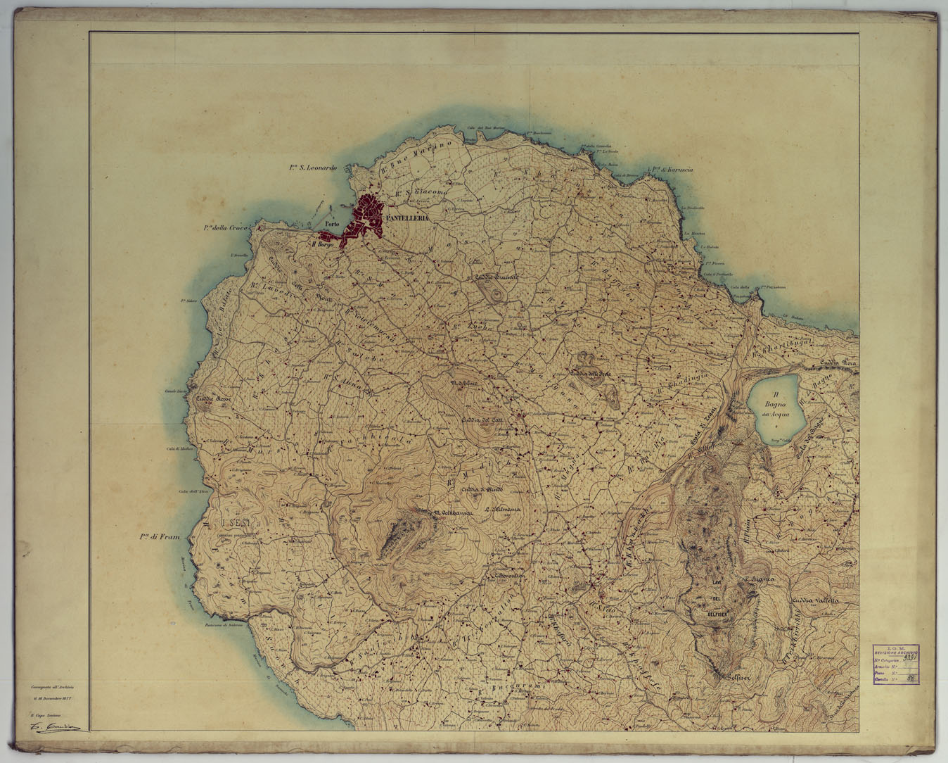 CARTA TOPOGRAFICA DELL'ISOLA DI PANTELLERIA RILEVATA E DISEGNATA DAGLI ALLIEVI DELL'ISTITUTO TOPOGRAFICO MILITARE ALLA SCALA DI 1:10.000 NELL'ANNO 1877 - FOGLIO 1.