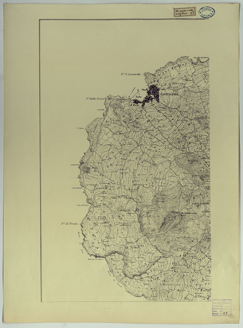 CARTA TOPOGRAFICA DELL'ISOLA DI PANTELLERIA RILEVATA E DISEGNATA DAGLI ALLIEVI DELL'ISTITUTO TOPOGRAFICO MILITARE ALLA SCALA DI 1:10.000 NELL'ANNO 1877 COPIA AL CORRENTE A TUTTO IL 1° FEBBRAIO 1893 - FOGLIO 1 PARTE 1-2.