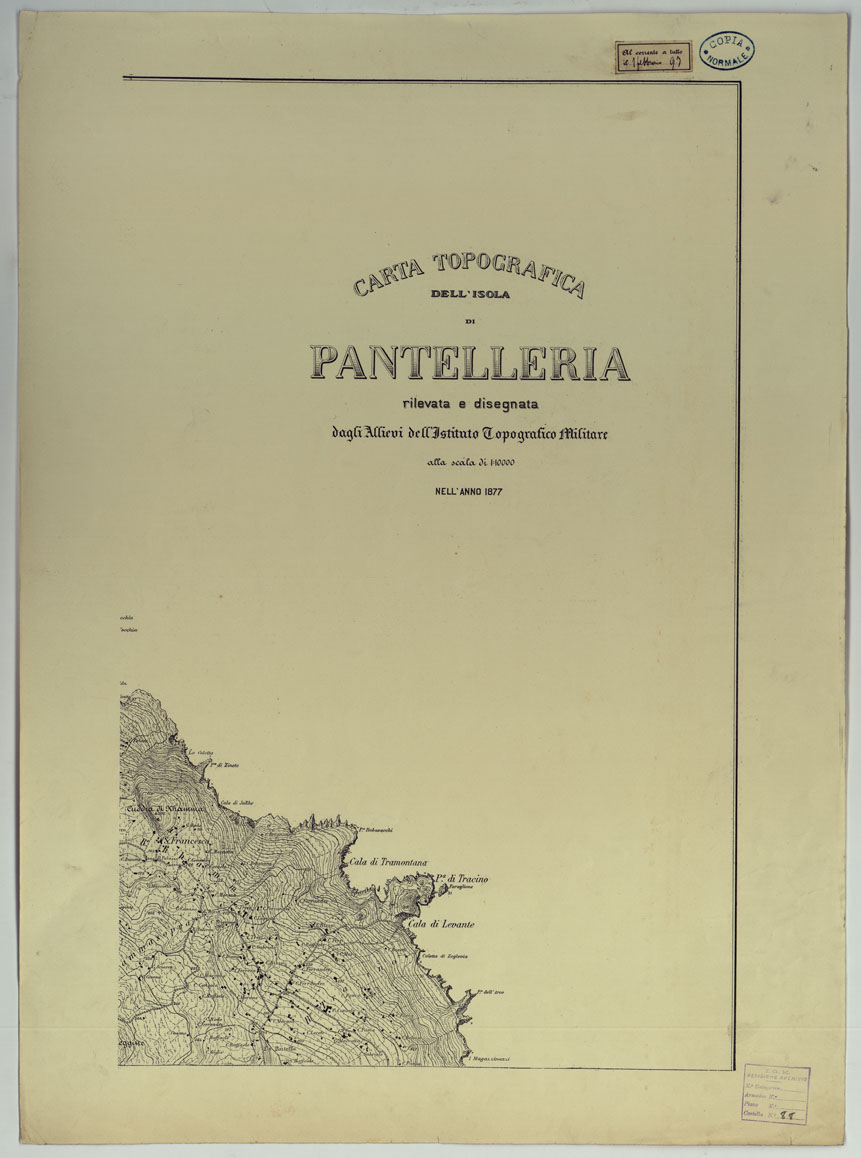 CARTA TOPOGRAFICA DELL'ISOLA DI PANTELLERIA RILEVATA E DISEGNATA DAGLI ALLIEVI DELL'ISTITUTO TOPOGRAFICO MILITARE ALLA SCALA DI 1:10.000 NELL'ANNO 1877 COPIA AL CORRENTE A TUTTO IL 1° FEBBRAIO 1893 - FOGLIO 2 PARTE 1-2.
