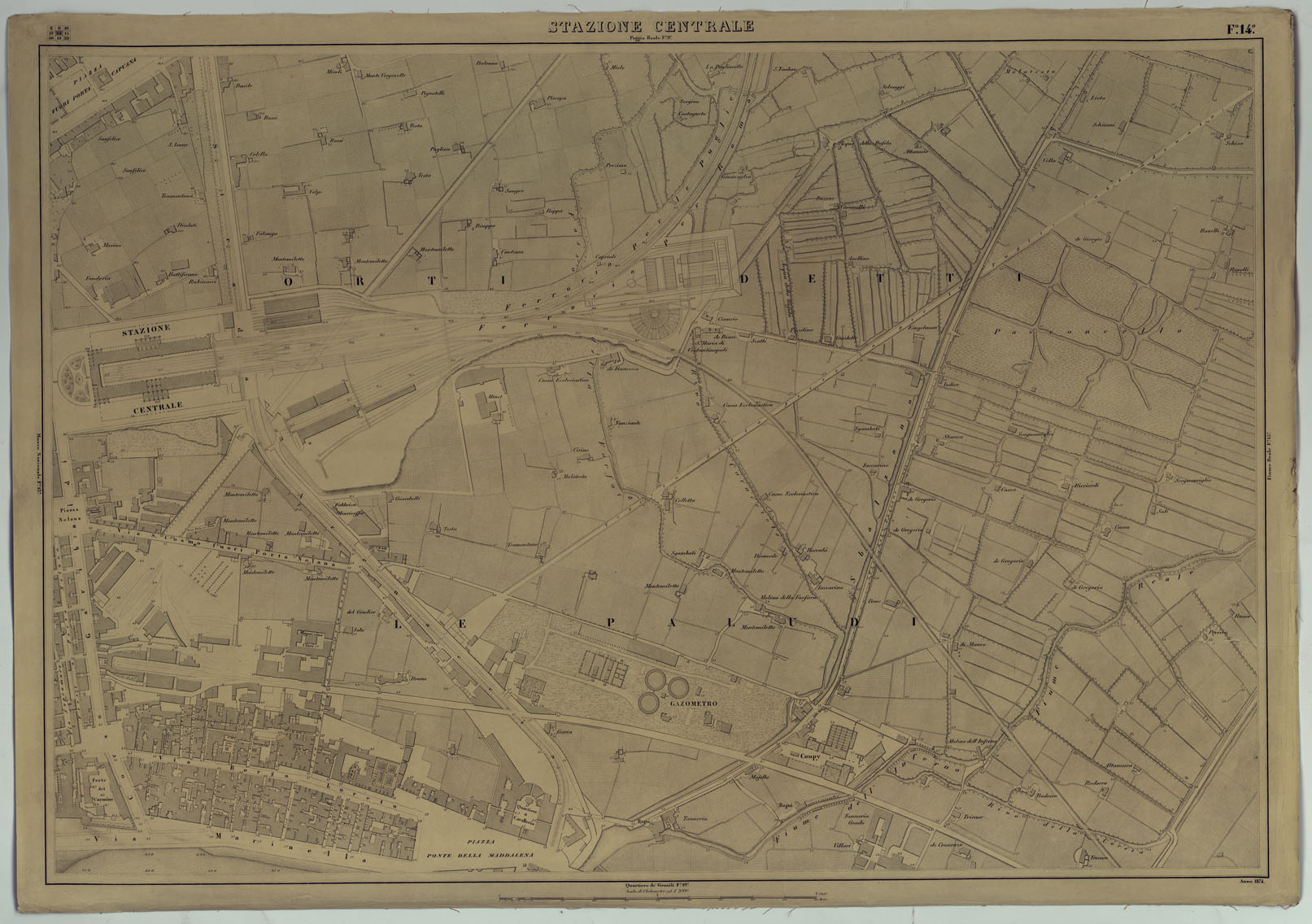 PIANTA DELLA CITTA' DI NAPOLI EDIZIONE A FOGLI MONTATI SU TELA E CON CURVE BATOMETRICHE - FOGLIO 14 STAZIONE CENTRALE.