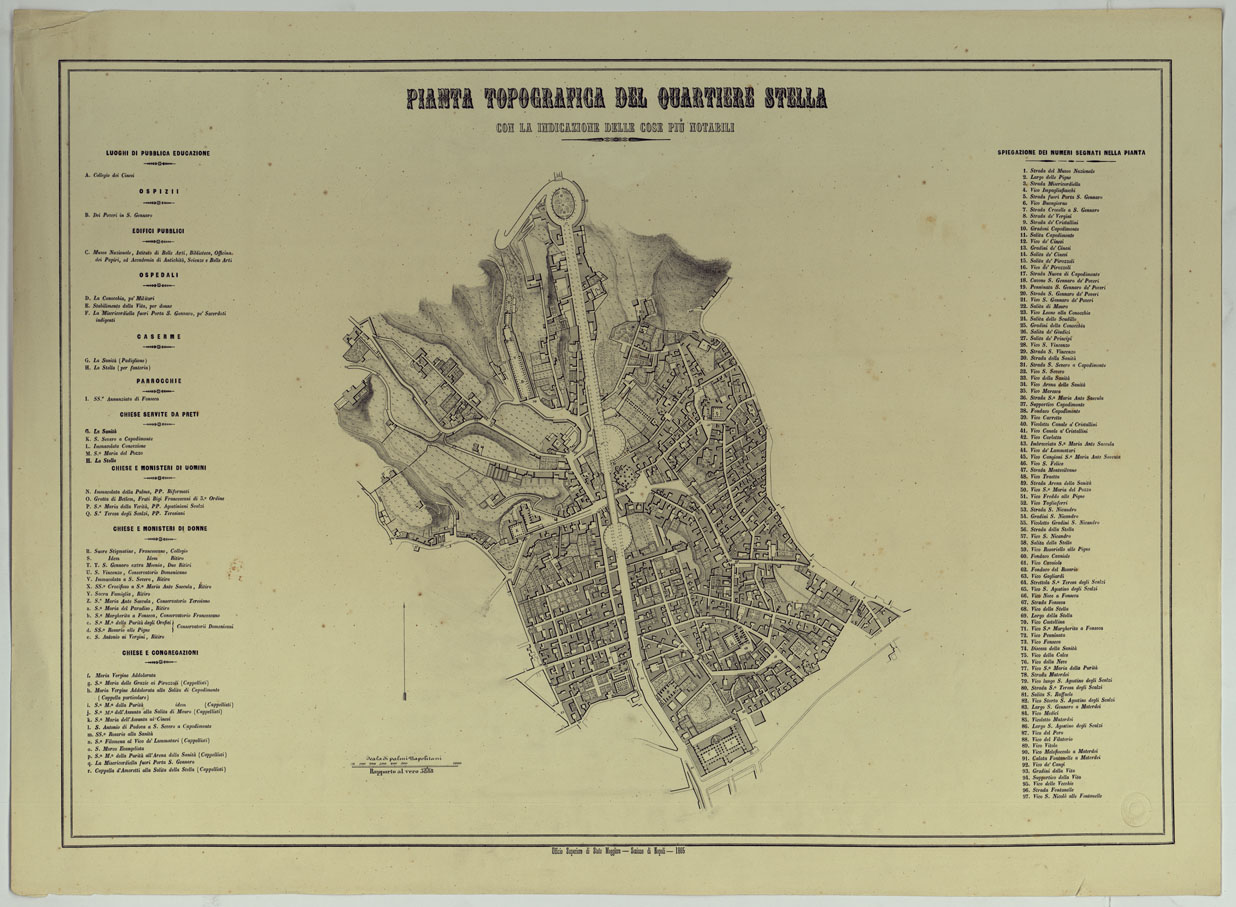 CARTA DEI DODICI QUARTIERI DI NAPOLI - PIANTA TOPOGRAFICA DEL QUARTIERE STELLA CON LA INDICAZIONE DELLE COSE PIU' NOTABILI.