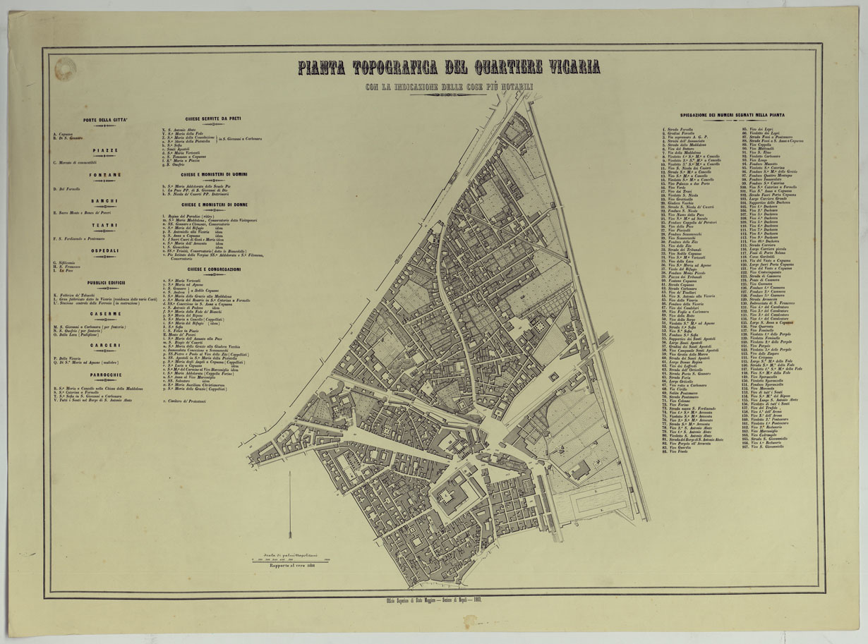 CARTA DEI DODICI QUARTIERI DI NAPOLI - PIANTA TOPOGRAFICA DEL QUARTIERE VICARIA CON LA INDICAZIONE PIU' NOTABILI.