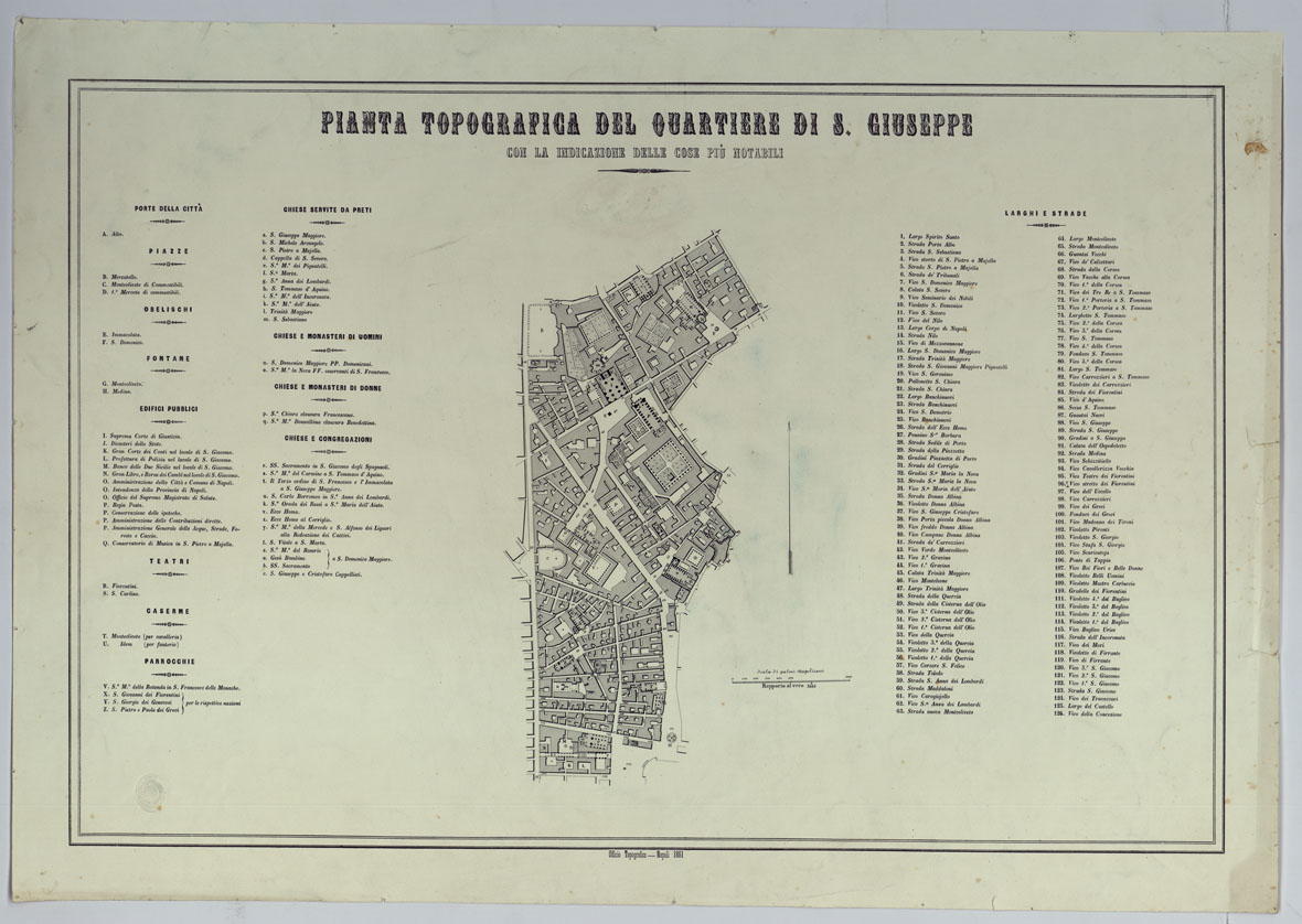 CARTA DEI DODICI QUARTIERI DI NAPOLI - PIANTA TOPOGRAFICA DEL QUARTIERE DI S. GIUSEPPE CON LA INDICAZIONE DELLE COSE PIU' NOTABILI.