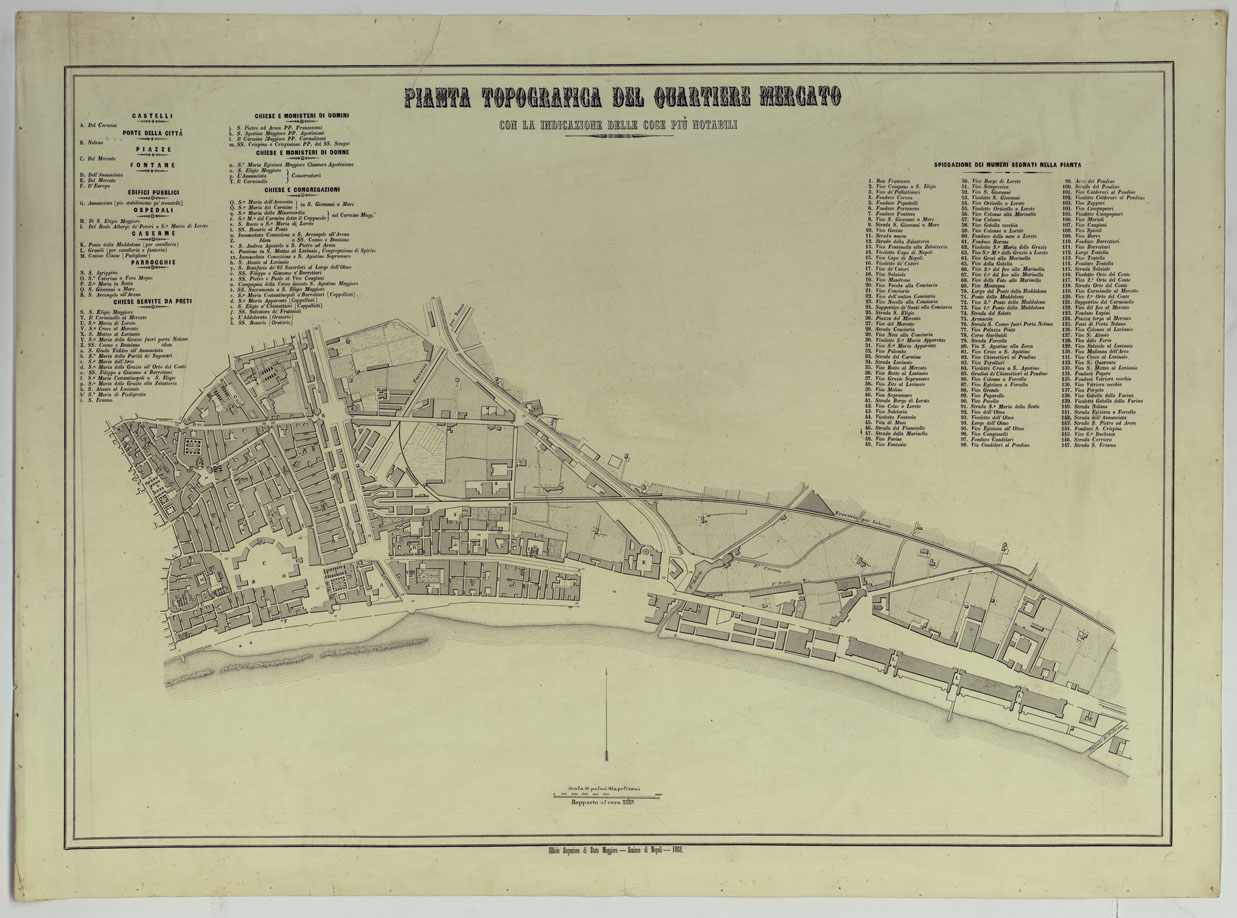 CARTA DEI DODICI QUARTIERI DI NAPOLI - PIANTA TOPOGRAFICA DEL QUARTIERE MERCATO CON LA INDICAZIONE DELLE COSE PIU' NOTABILI.