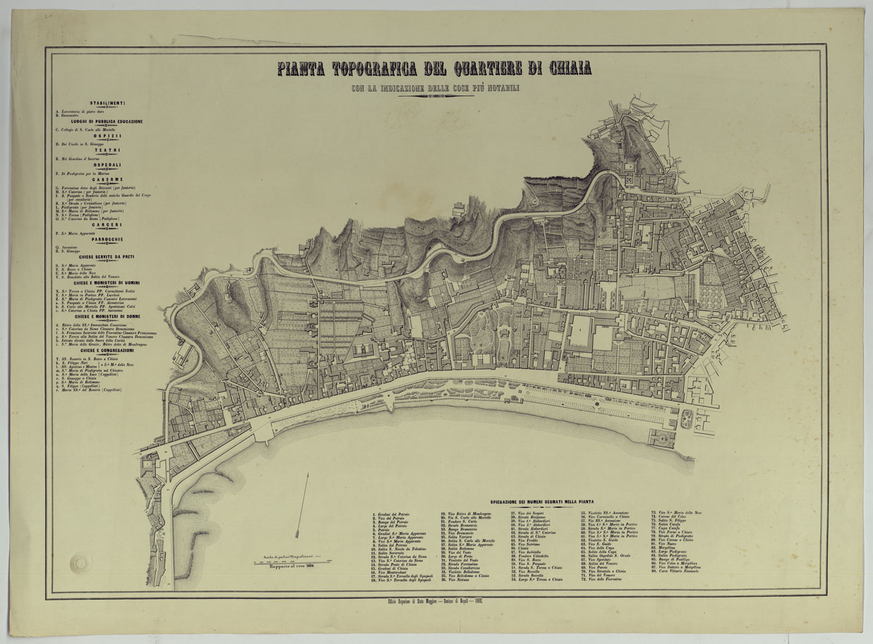 CARTA DEI DODICI QUARTIERI DI NAPOLI - PIANTA TOPOGRAFICA DEL QUARTIERE DI CHIAIA CON LA INDICAZIONE DELLE COSE PIU' NOTABILI.