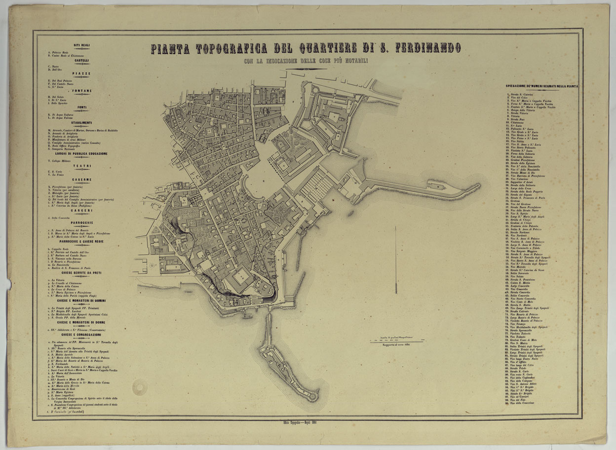 CARTA DEI DODICI QUARTIERI DI NAPOLI - PIANTA TOPOGRAFICA DEL QUARTIERE DI S. FERDINANDO CON LA INDICAZIONE DELLE COSE NOTABILI.