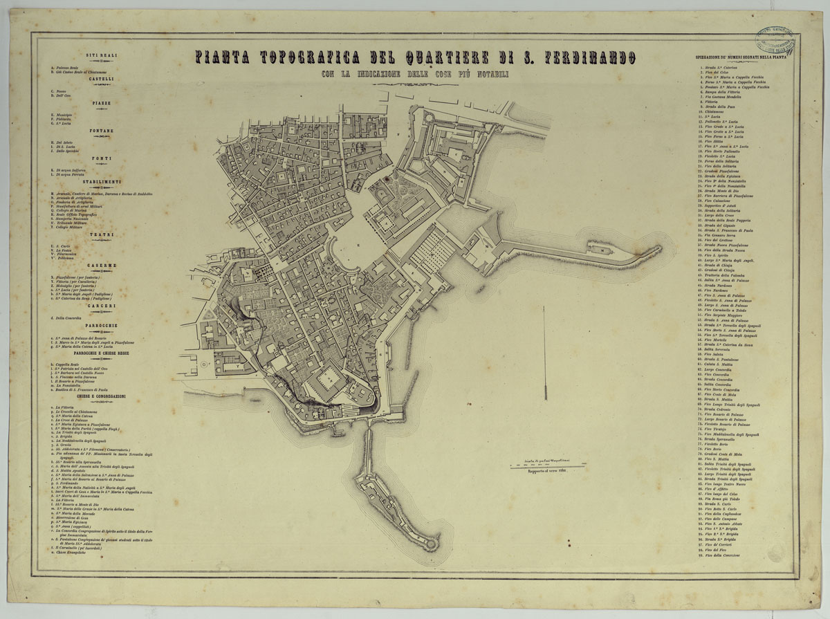 CARTA DEI DODICI QUARTIERI DI NAPOLI - PIANTA TOPOGRAFICA DEL QUARTIERE DI S. FERDINANDO CON LA INDICAZIONE DELLE COSE PIU' NOTABILI.
