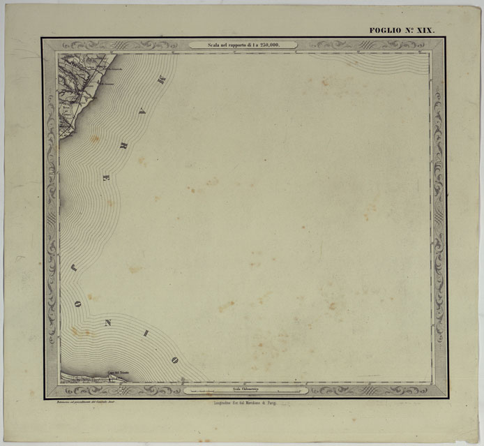 CARTA DELLE PROVINCE NAPOLITANE IN FOGLI 25 FOTOINCISA COL PROCEDIMENTO DEL GENERALE AVET ALLA SCALA DI 1:250.000 PUBBLICATA DALL'ISTITUTO TOPOGRAFICO MILITARE, 1874 - FOGLIO XIX.