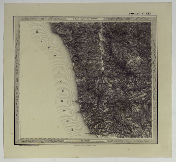 CARTA DELLE PROVINCE NAPOLITANE IN FOGLI 25 FOTOINCISA COL PROCEDIMENTO DEL GENERALE AVET ALLA SCALA DI 1:250.000 PUBBLICATA DALL'ISTITUTO TOPOGRAFICO MILITARE, 1874 - FOGLIO XXI.