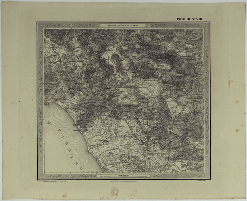 CARTA DELLE PROVINCE NAPOLITANE IN FOGLI 25 FOTOINCISA COL PROCEDIMENTO DEL GENERALE AVET ALLA SCALA DI 1:250.000 COPIA COMPLETA RIVEDUTA DAL 1882 AL 1884 PUBBLICATA DALL'ISTITUTO TOPOGRAFICO MILITARE, 1874 - FOGLIO VIII.