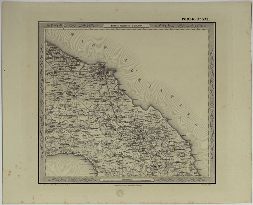 CARTA DELLE PROVINCE NAPOLITANE IN FOGLI 25 FOTOINCISA COL PROCEDIMENTO DEL GENERALE AVET ALLA SCALA DI 1:250.000 COPIA COMPLETA RIVEDUTA DAL 1882 AL 1884 PUBBLICATA DALL'ISTITUTO TOPOGRAFICO MILITARE, 1874 - FOGLIO XVI.