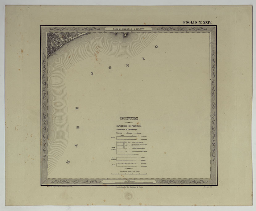 CARTA DELLE PROVINCE NAPOLITANE IN FOGLI 25 FOTOINCISA COL PROCEDIMENTO DEL GENERALE AVET ALLA SCALA DI 1:250.000 COPIA COMPLETA RIVEDUTA DAL 1882 AL 1884 PUBBLICATA DALL'ISTITUTO TOPOGRAFICO MILITARE, 1874 - FOGLIO XXIV.