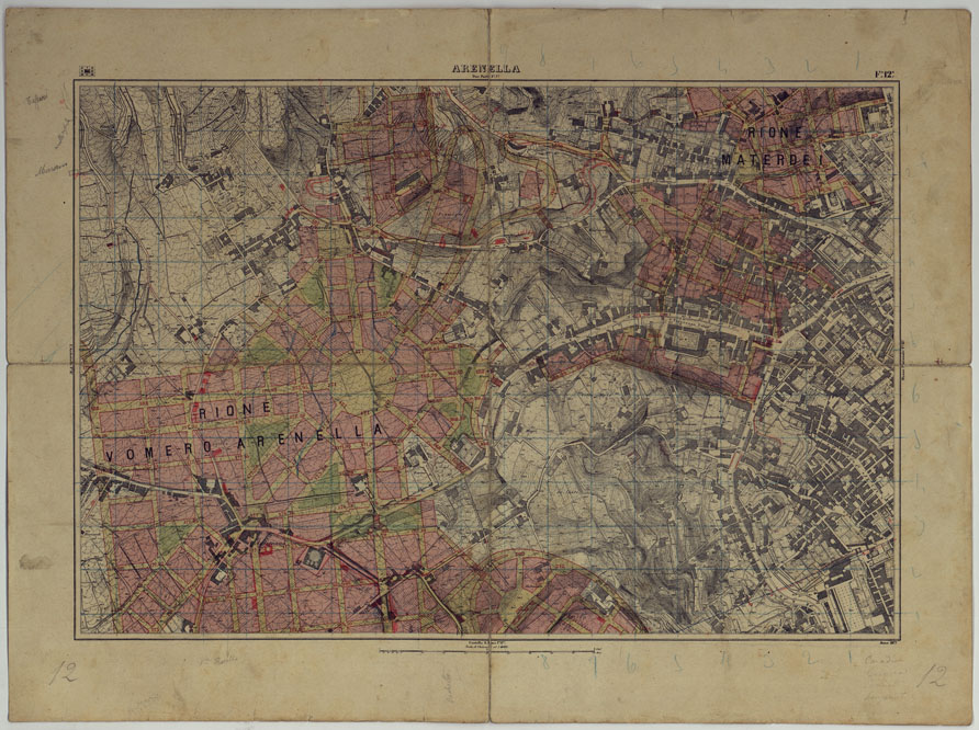 PIANTA TOPOGRAFICA DELLA CITTA' DI NAPOLI ALLA SCALA DI 1:4.000 EDIZIONE CON APPROVAZIONE PER AGGIORNAMENTI CATASTALI - FOGLIO 12 ARENELLA.